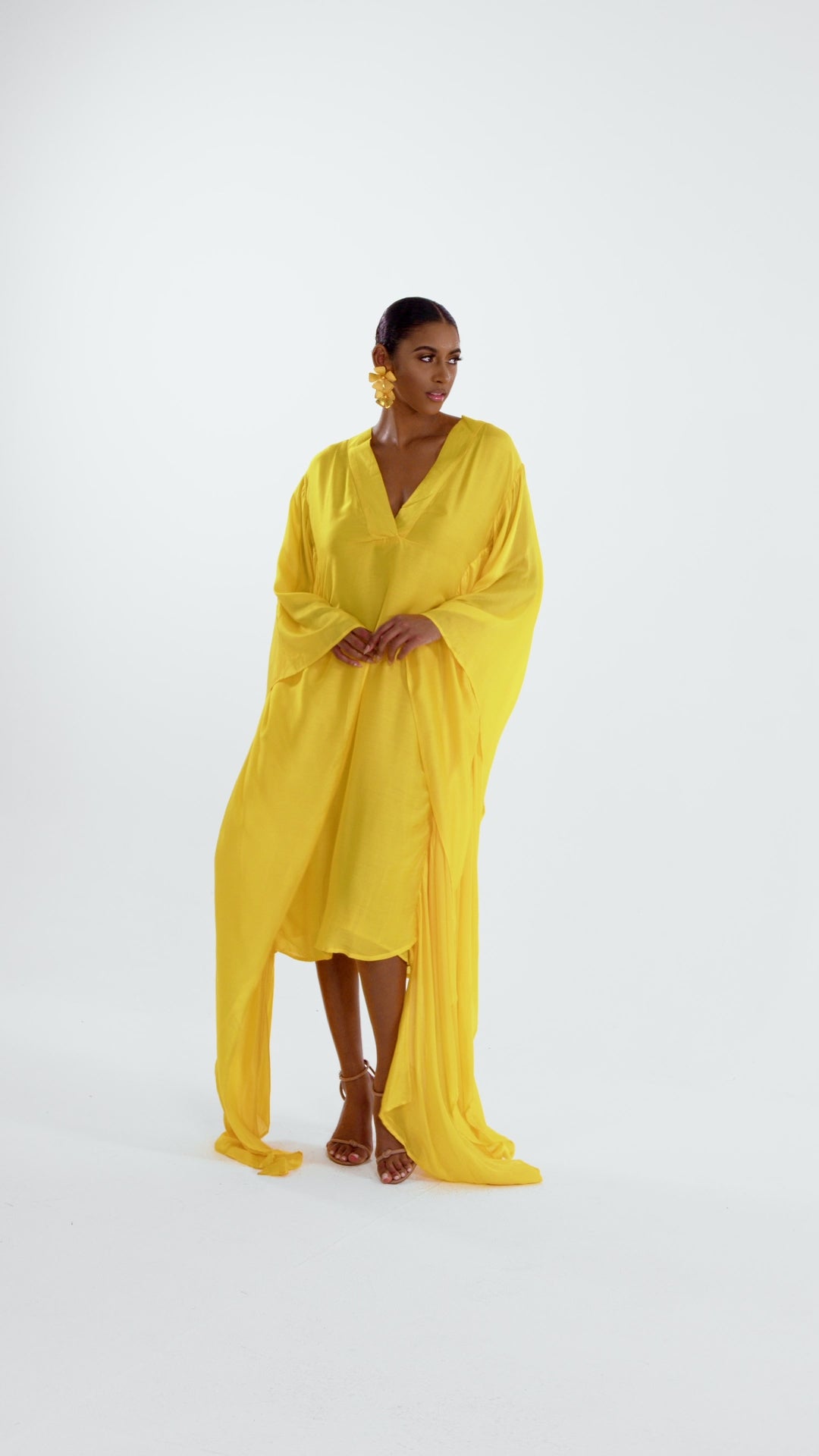 The HAJARI KAFTAN features long sleeves and an open front for a relaxed, easy fit. Made from a non-stretch fabric, this kaftan falls loosely over the body for a comfortable yet chic look. With one size available, you're sure to find your perfect fit.