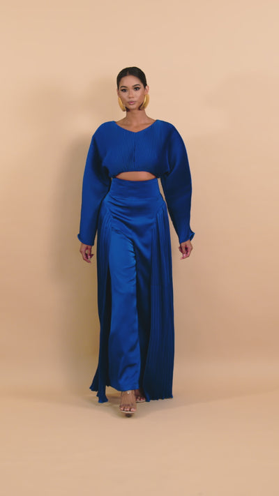 Sculptural accordion pleating throughout